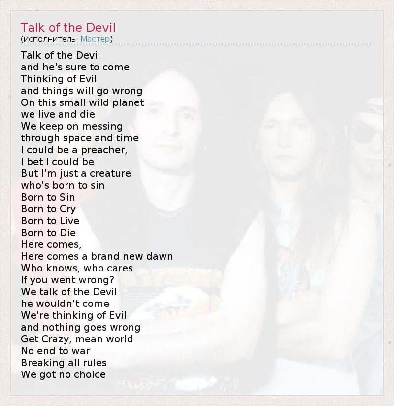 А как ты думаешь, о чем песня "Talk of the Devil" ?