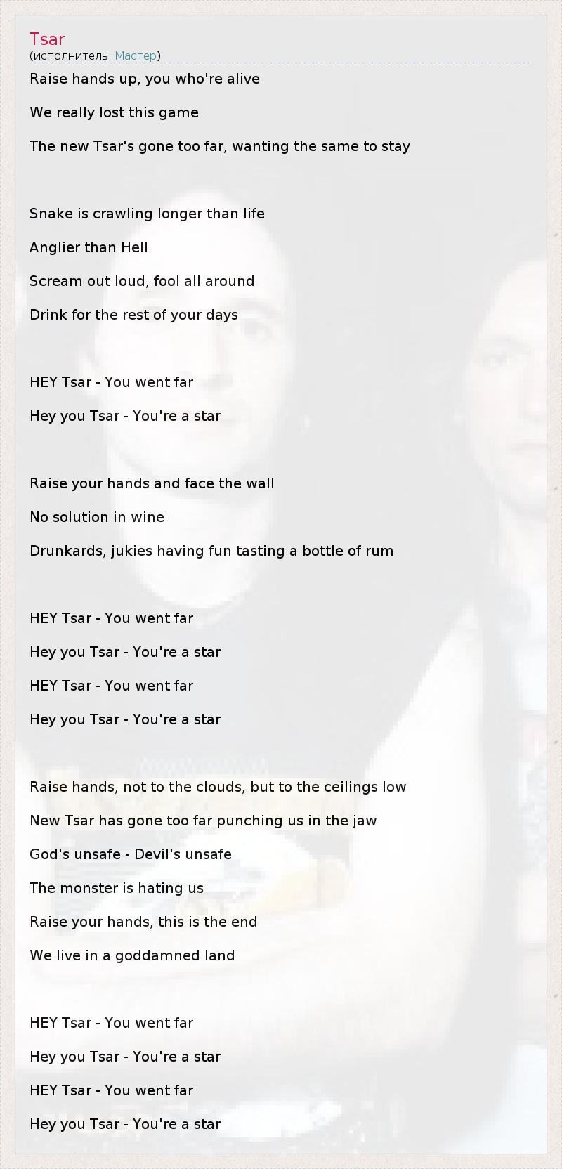 Это интересно:Есть, как минимум, две группы с названием МастерПервая – хорроркор группа из города Загреб.Вторая – Рок-группа Мастер (Мастер) была образована в апреле 1987 в городе Москва года после ухода Андрея Большакова, Алика Грановского, Игоря Молчанова и Кирилла Покровского из группы «Ария». Причиной ухода послужил конфликт с руководителем «Арии» В.Я. Вeкштейном. Последний... продолжение