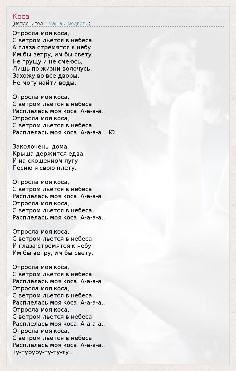 Это интересно:Группа "Маша и Медведи" была образованна в 1997 году. Отправной точкой истории группы можно считать 1996 год, когда Мария Макарова передала демо-запись своих песен гастролировавшему в городе Краснодаре солисту группы "Мегаполис" Олегу Нестерову. В 1997 году М. Макарова подписывает контракт с Олегом Нестеровым, который и становится ее продюсером. М. Макарова собирает музыкантов в... продолжение