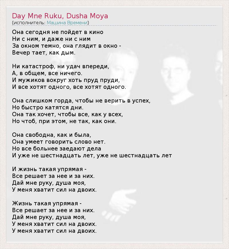 Day Mne Ruku, Dusha Moya