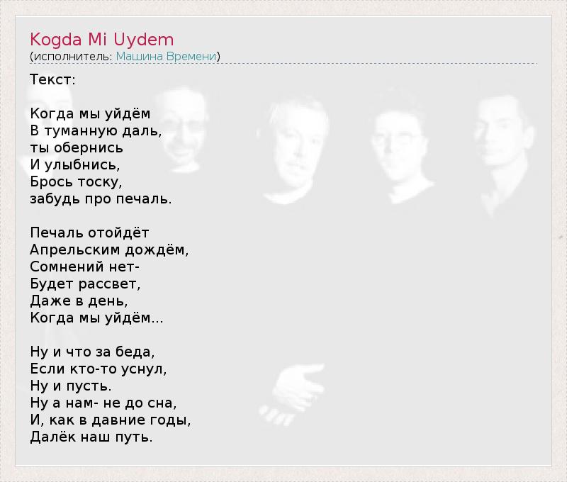 А как ты думаешь, о чем песня "Kogda Mi Uydem" ?