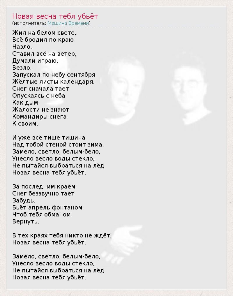 ГлавнаяИсполнителиМашина ВремениНовая весна тебя убьёт