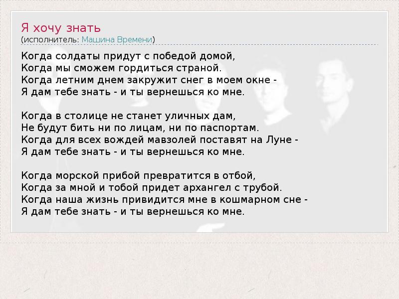 10.Я хочу знать (3:30) А. Кутиков — А. Макаревич