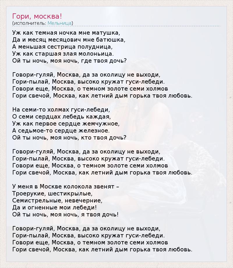 Гори свечой, Москва, как летний дым горька твоя любовь.