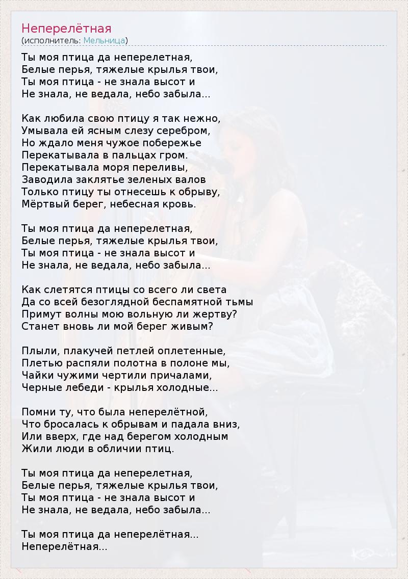А как ты думаешь, о чем песня "Неперелётная" ?
