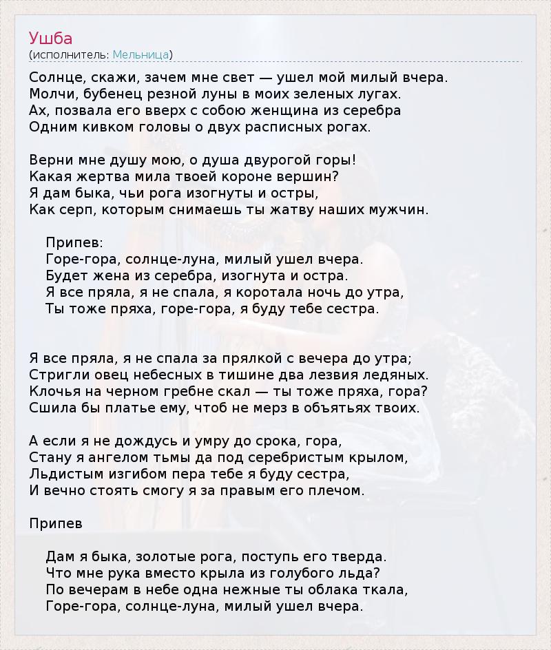 Солнце, скажи, зачем мне свет — ушел мой милый вчера.
