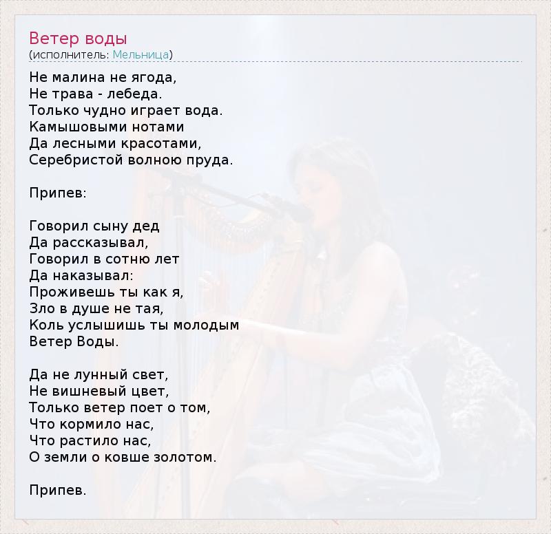 А как ты думаешь, о чем песня "Ветер воды" ?