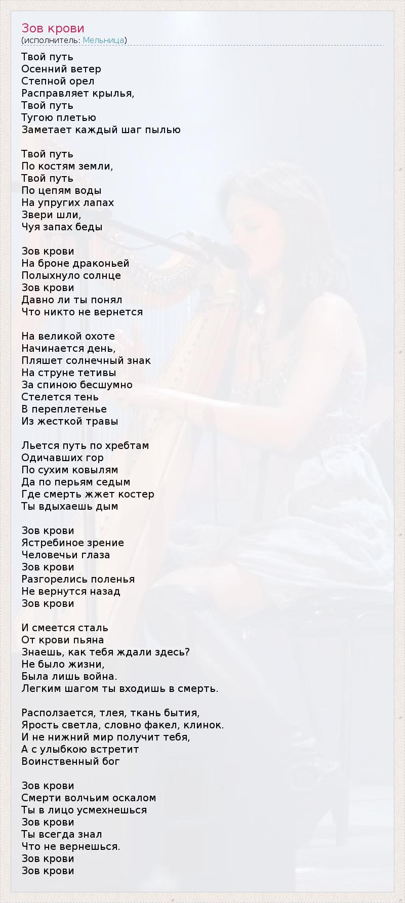 Зов крови — третий альбом русской фолк-группы Мельница. В него вошли многие песни с предыдущих альбомов и ранее не издававшиеся на альбомах песни, а также новые работы.