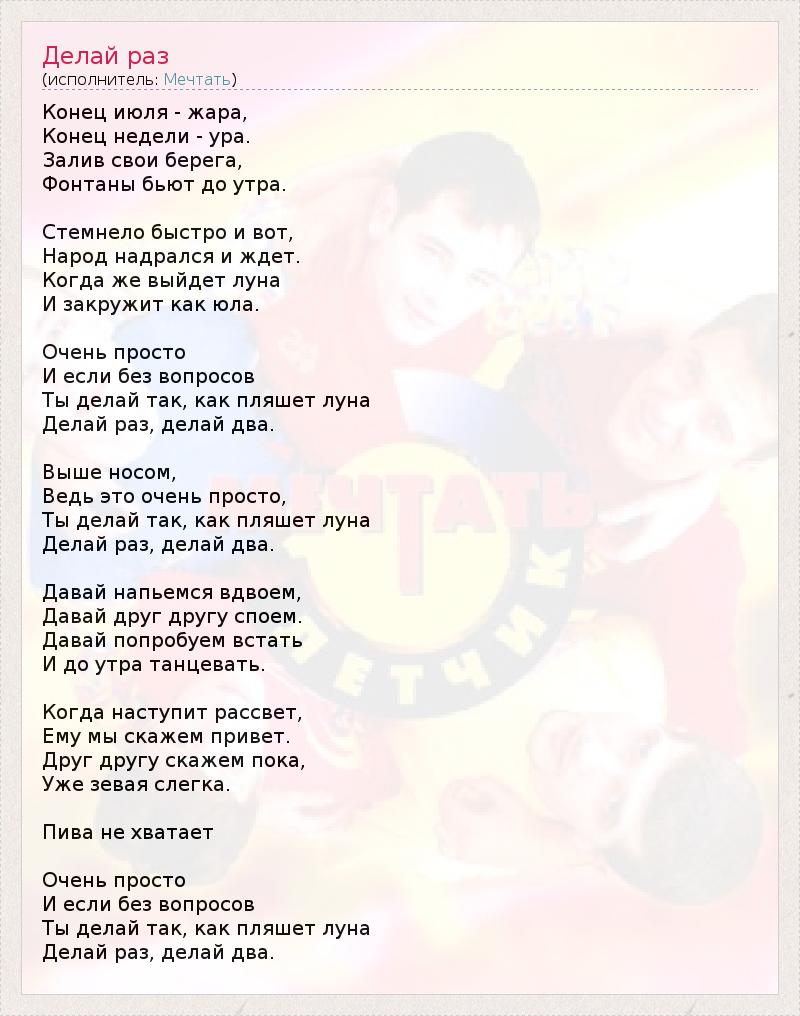 Это интересно:Первый альбом группы "Мечтать" с названием "Летчик" вышел в 1996 году и включал в себя 14 романтических песен. Все они явно посвящались какой-то девушке и пропитаны теплотой и ностальгией давно минувших дней… Поклонники не дали пластинке запылиться на полке.Спустя 12 лет, после долгого молчания из-за конфликта с бывшим продюсером, группа во главе с бессменным лидером Олегом... продолжение