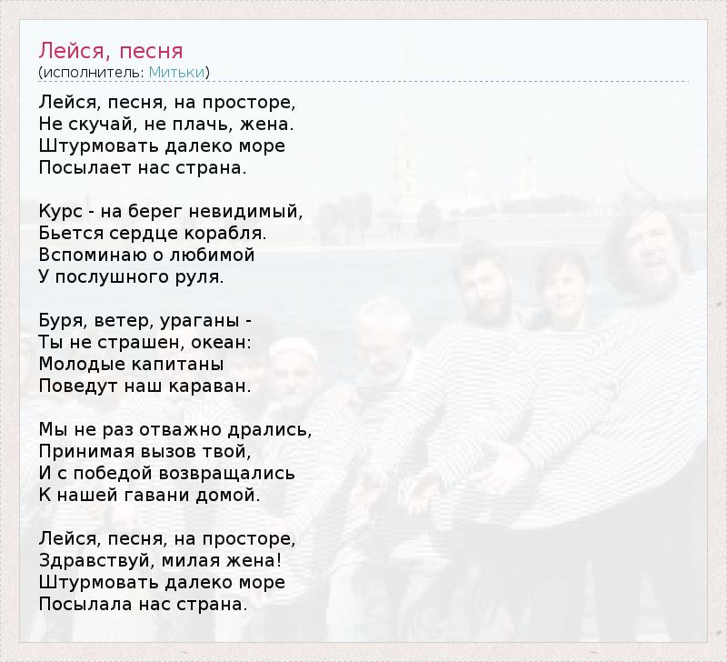А как ты думаешь, о чем песня "Лейся, песня" ?