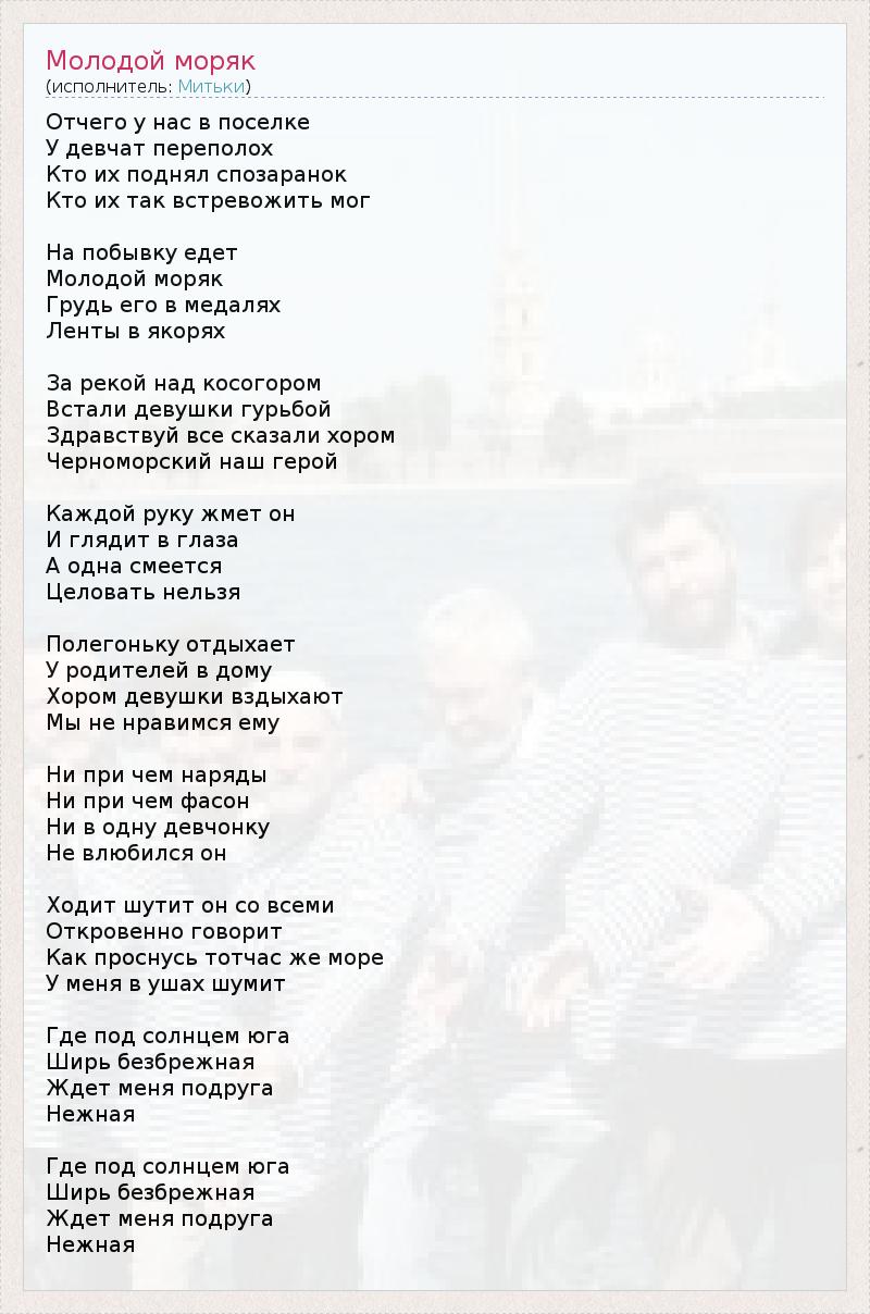 ГлавнаяИсполнителиМитькиМолодой моряк