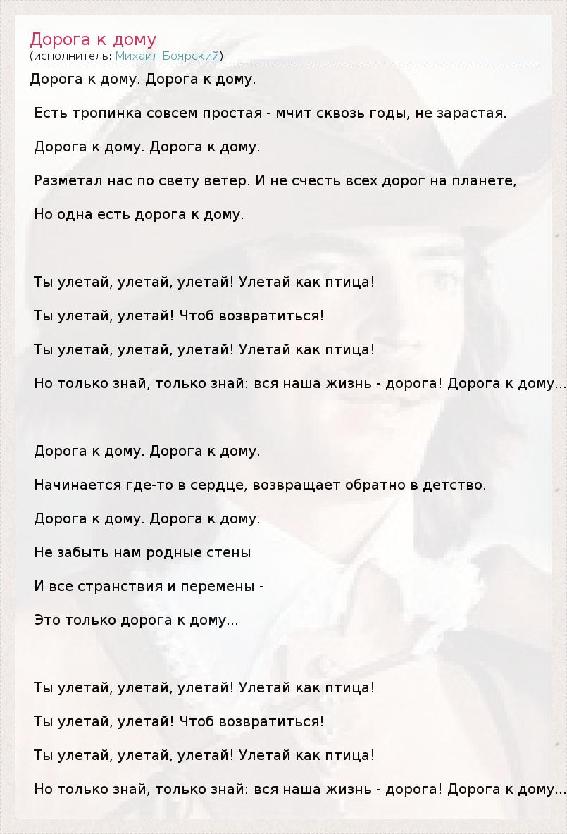 Но только знай, только знай: вся наша жизнь - дорога! Дорога к дому...