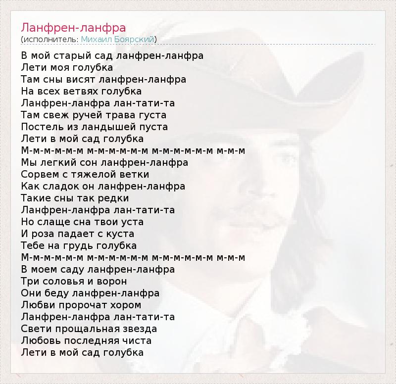 А как ты думаешь, о чем песня "Ланфрен-ланфра" ?