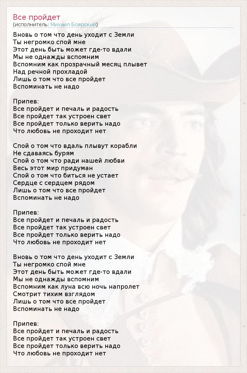 А как ты думаешь, о чем песня "Все пройдет" ?