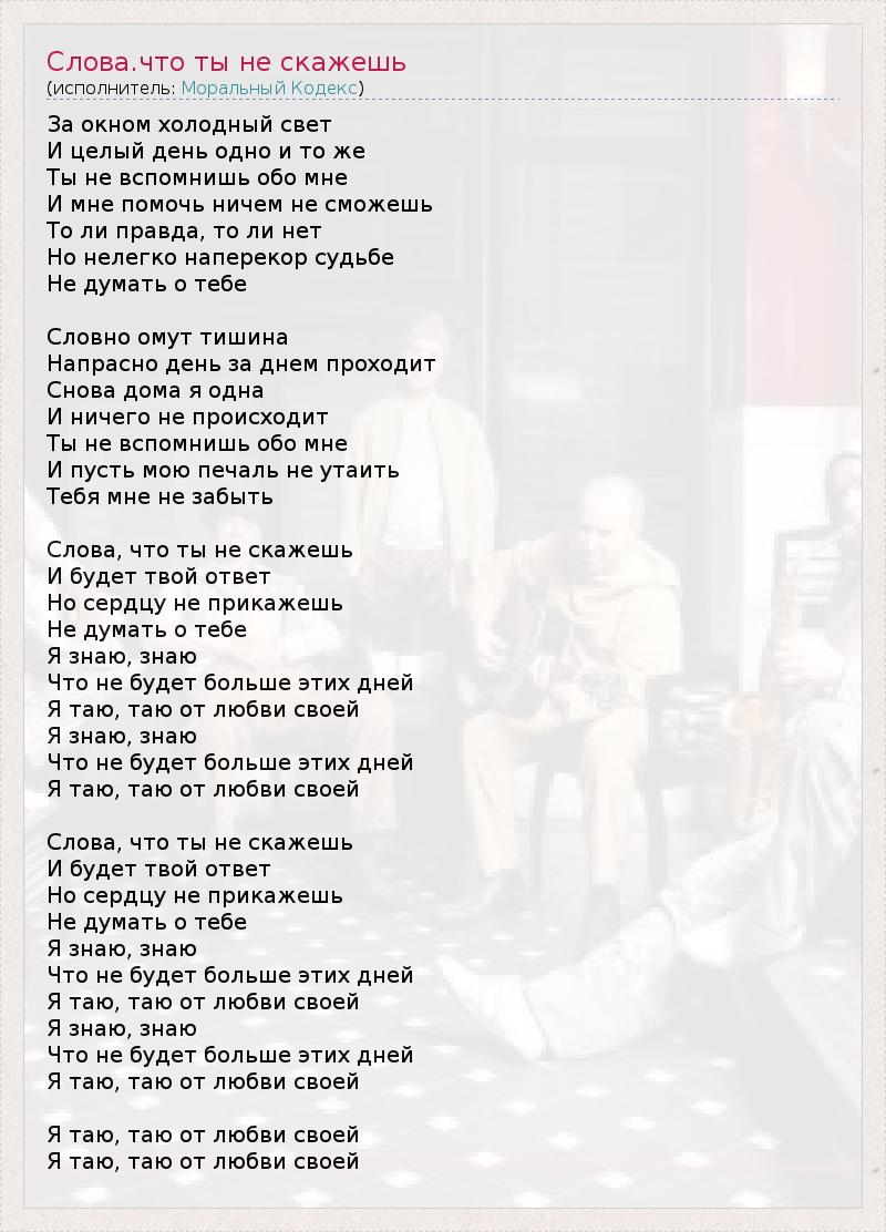 ГлавнаяИсполнителиМоральный КодексСлова.что ты не cкажешь