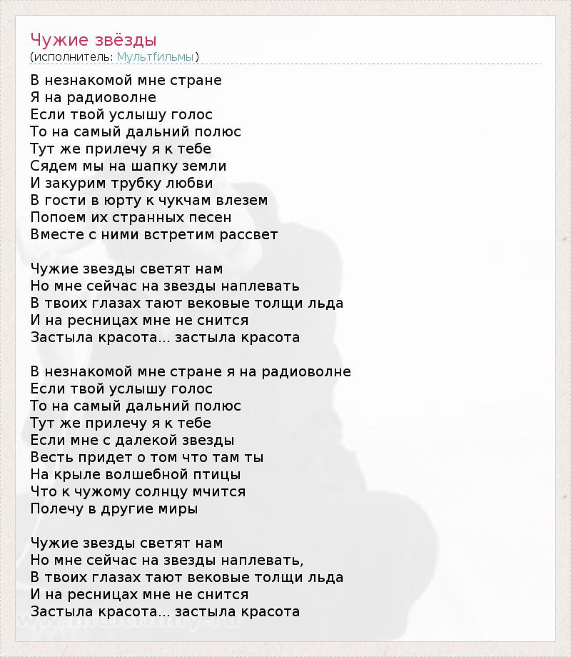А как ты думаешь, о чем песня "Чужие звёзды" ?