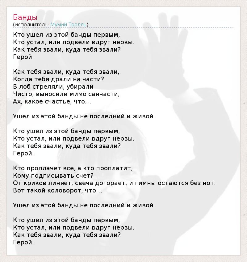 Павло: Спасибо моим родителям и близким за вдохновение, группе Мумий Тролль (всем кто в кадре и в backstage) за мою вторую семью и Маше Ф.