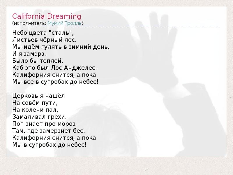 А как ты думаешь, о чем песня "California Dreaming" ?