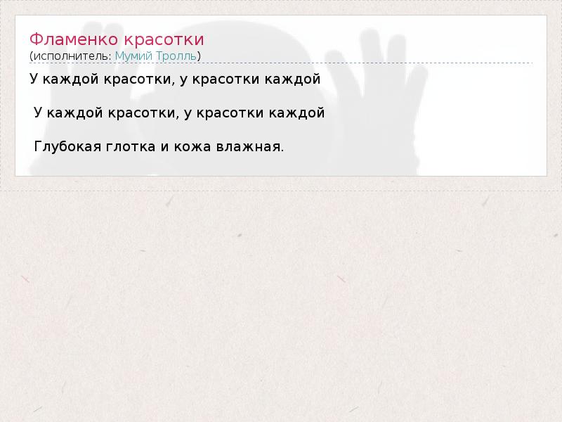 ГлавнаяИсполнителиМумий ТролльФламенко красотки