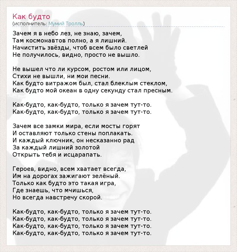 А как ты думаешь, о чем песня "Как будто" ?