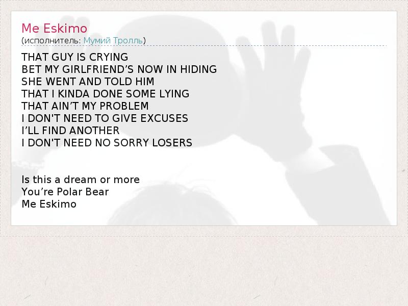 А как ты думаешь, о чем песня "Me Eskimo" ?
