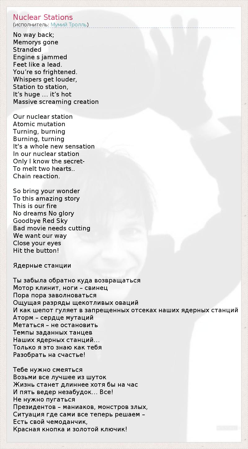 А как ты думаешь, о чем песня "Nuclear Stations" ?