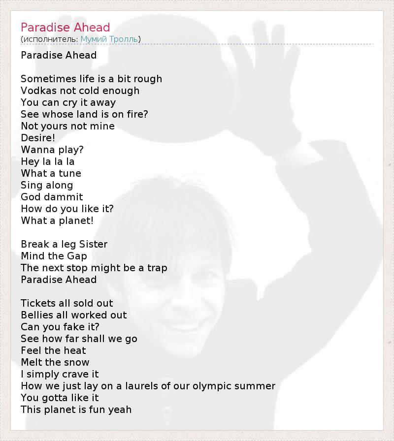 А как ты думаешь, о чем песня "Paradise Ahead" ?