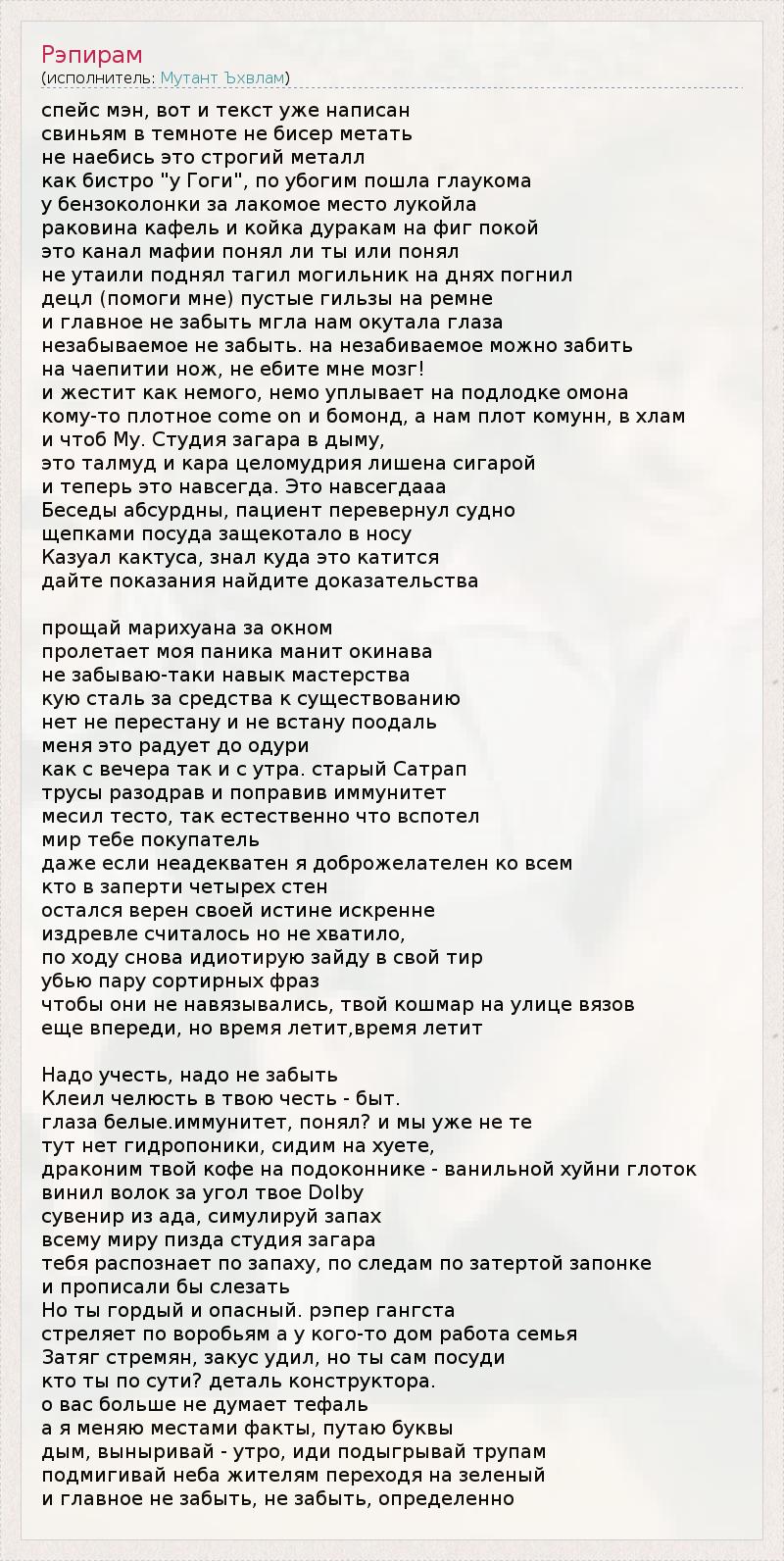 Это интересно:Мутант Ъхвлам это experimental hip-hop коллектив, мутировавший в подземельях славного города Магнитогорска, где рэп разлагается и гниет в дешевых клубах с незапамятных 90-х.На творчество коллектива повлияли ветра с Магнитогорского Металлургического Комбината, а также интоксикация высокоинтеллектуальных участников коллектива.www.vk.com/mootant - кружок шизофреников-куплетистовДискография:... продолжение