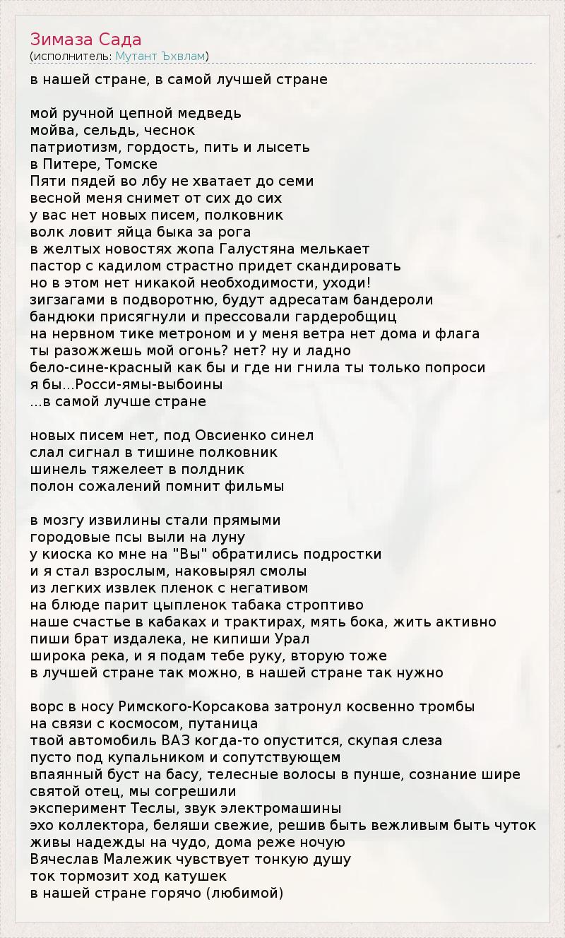 А как ты думаешь, о чем песня "Зимаза Сада" ?