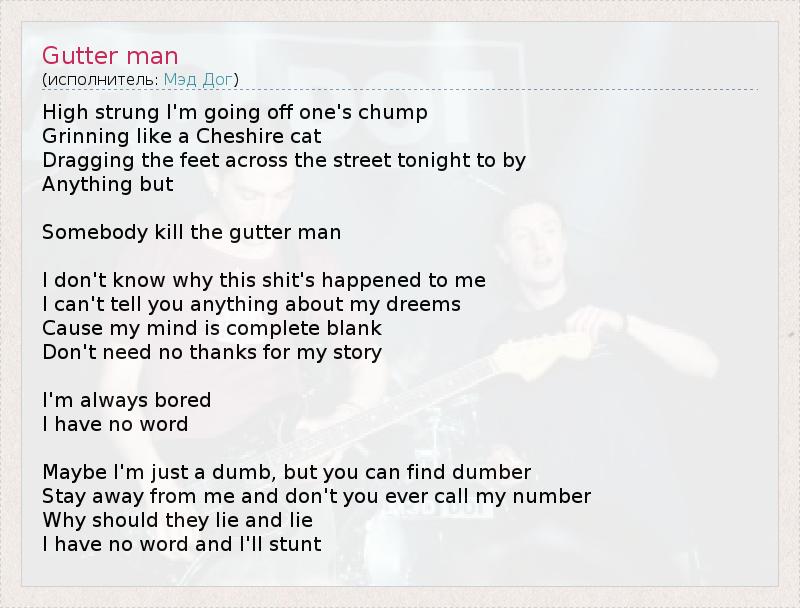 А как ты думаешь, о чем песня "Gutter man" ?