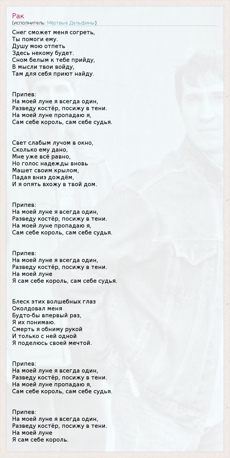 Это интересно:На данный момент группа сменила название на "Дельфины" .Первое выступление группы прошло в сентябре 1996 года, в тогдашней столице Ингушетии — городе Назрань. Концерт в ГДК принёс группе мгновенную известность в пределах республики. Через полгода подпольные и тщательно скрываемые записи группы разлетались «голубиной почтой», несмотря... продолжение