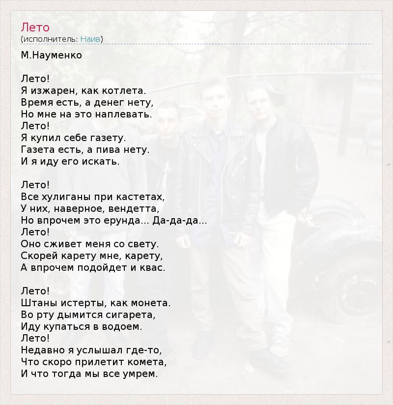 А как ты думаешь, о чем песня "Лето" ?