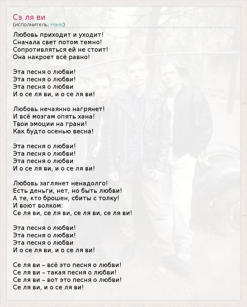 А как ты думаешь, о чем песня "Сэ ля ви" ?