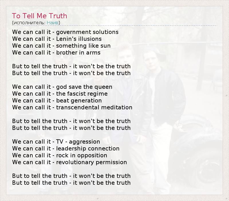 А как ты думаешь, о чем песня "To Tell Me Truth" ?