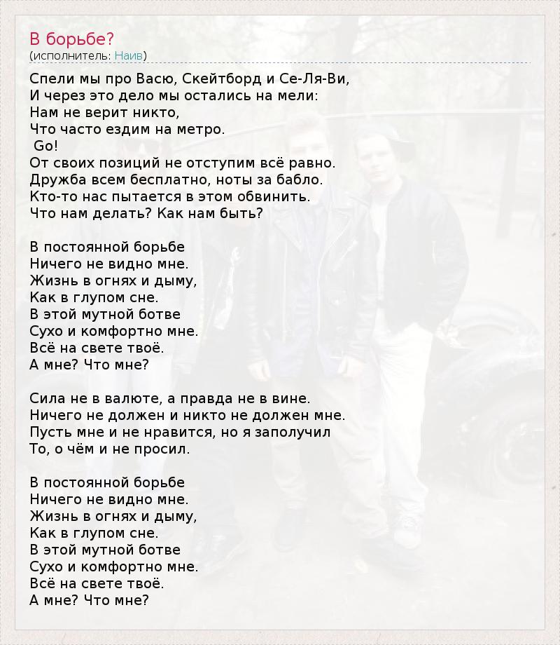 А как ты думаешь, о чем песня "В борьбе?" ?