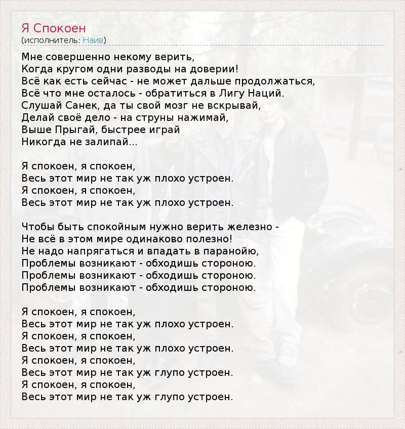 А как ты думаешь, о чем песня "Я Cпокоен" ?