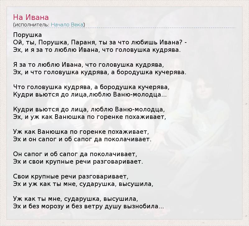 Эх, и я за то люблю Ивана, что головушка кудрява.