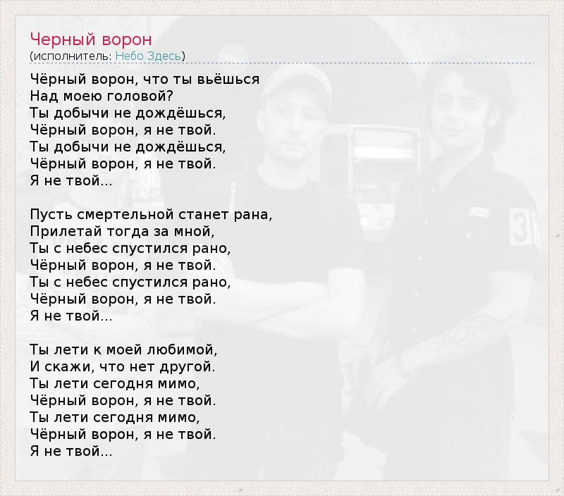 А как ты думаешь, о чем песня "Черный ворон" ?