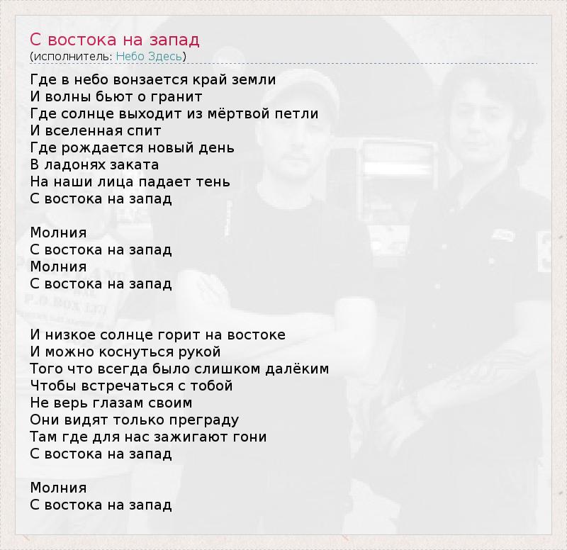 ГлавнаяИсполнителиНебо ЗдесьС востока на запад