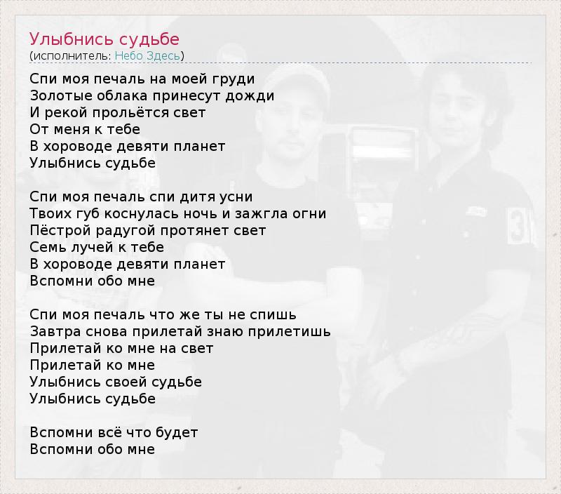 ГлавнаяИсполнителиНебо ЗдесьУлыбнись судьбе