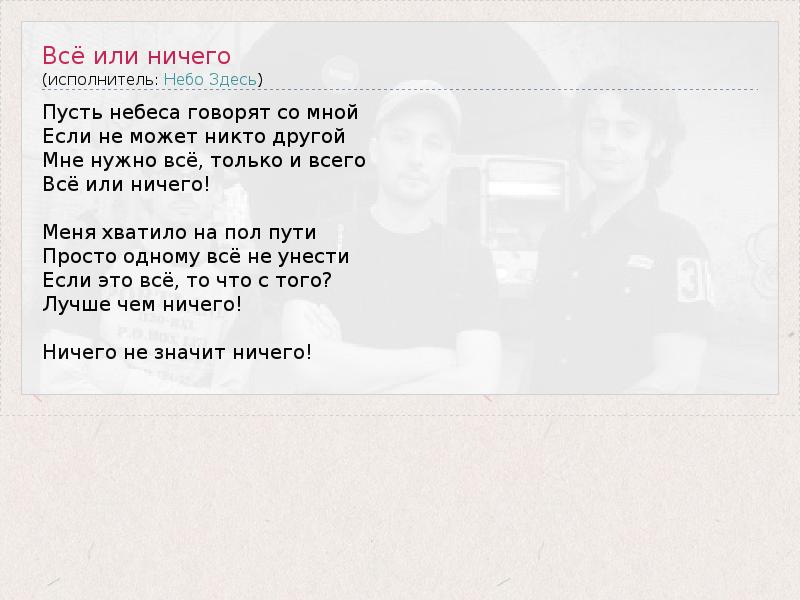 А как ты думаешь, о чем песня "Всё или ничего" ?