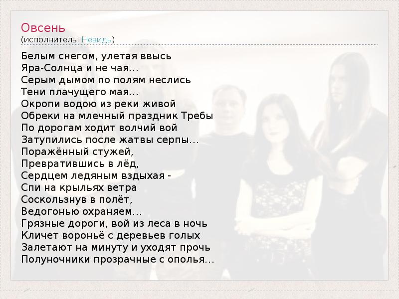 Это интересно:Группа НЕВИДЬ была образована в сентябре 2004-го года Алексеем (Лесьяром) Агафоновым после ухода из группы Вutterfly Тemple. К ноябрю был собран полный состав группы, и началась работа над дебютным альбомом. Лесьяр — вдохновитель и поэт, наметил продолжение тематики, заложенной в Вutterfly Тemple. Осенью 2005 года группа подписывает свой первый контракт со звукозаписывающей компанией Irond records. В октябре... продолжение