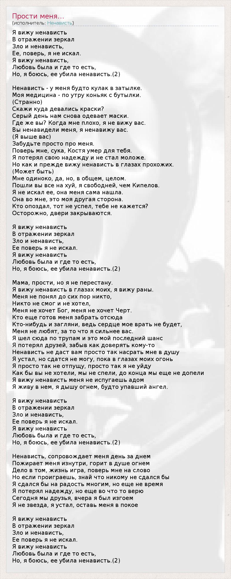 А как ты думаешь, о чем песня "Прости меня..." ?