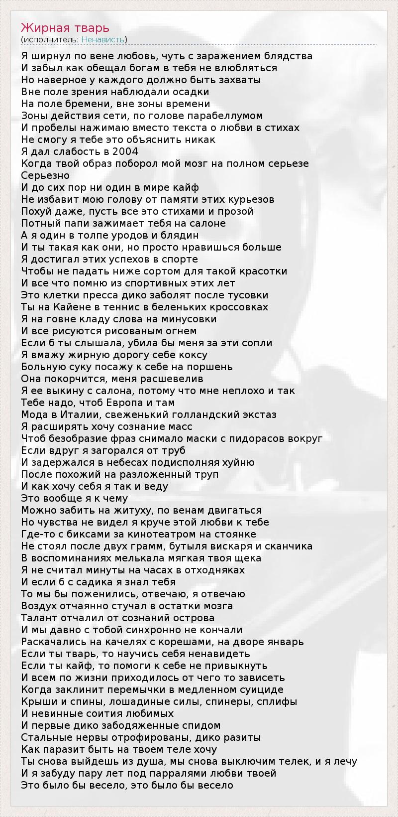 А как ты думаешь, о чем песня "Жирная тварь" ?