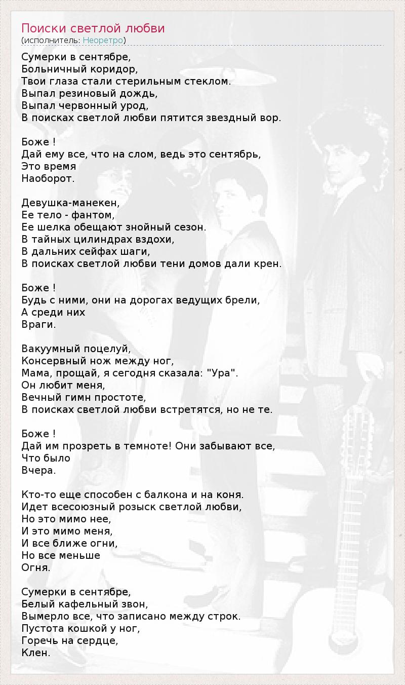ГлавнаяИсполнителиНеоретроПоиски светлой любви