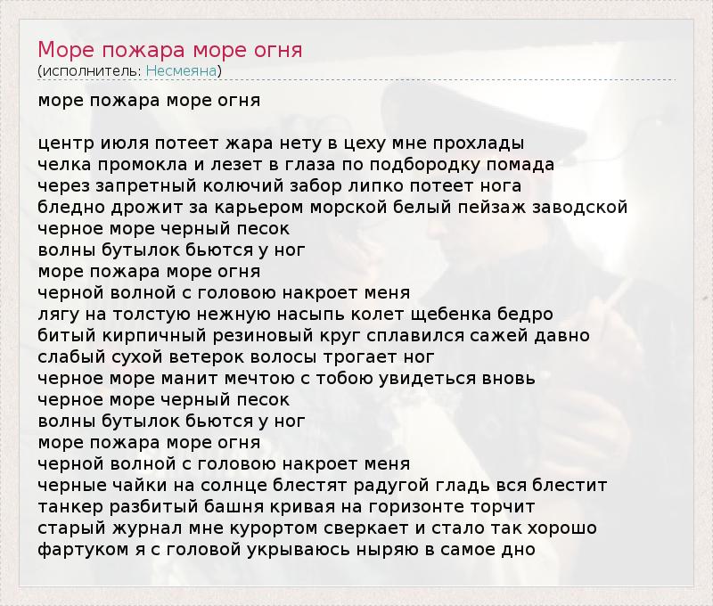 ГлавнаяИсполнителиНесмеянаМоре пожара море огня
