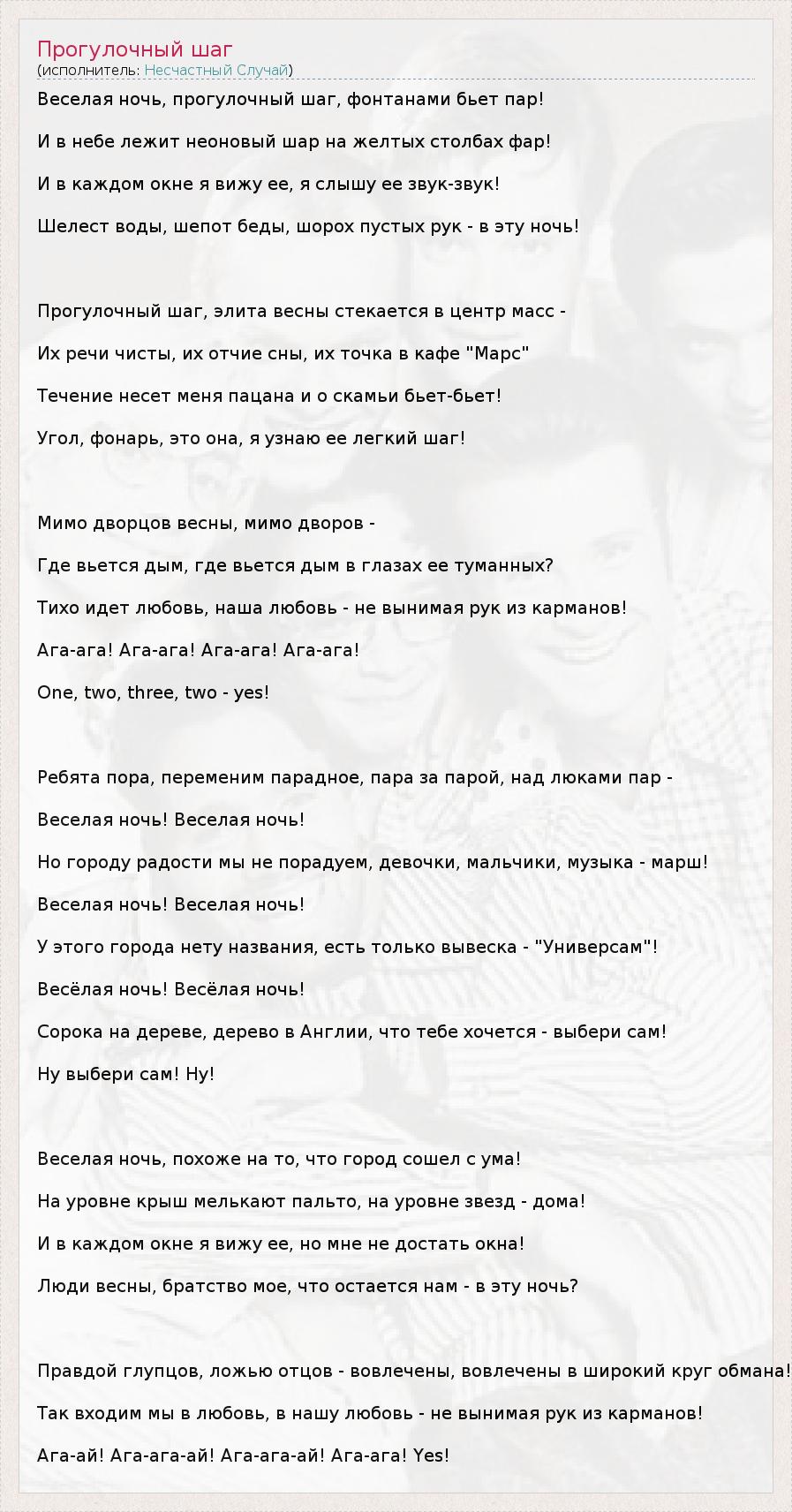 А как ты думаешь, о чем песня "Прогулочный шаг" ?