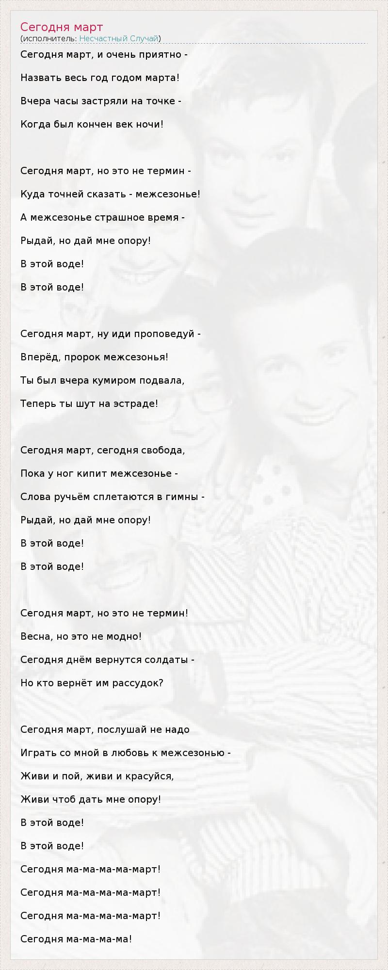 А как ты думаешь, о чем песня "Сегодня март" ?
