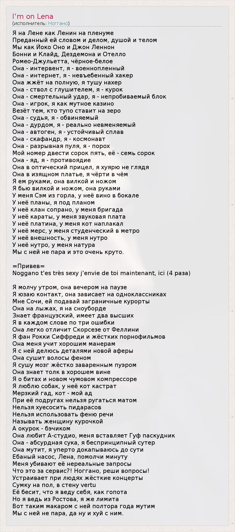 А как ты думаешь, о чем песня "I’m on Lena" ?