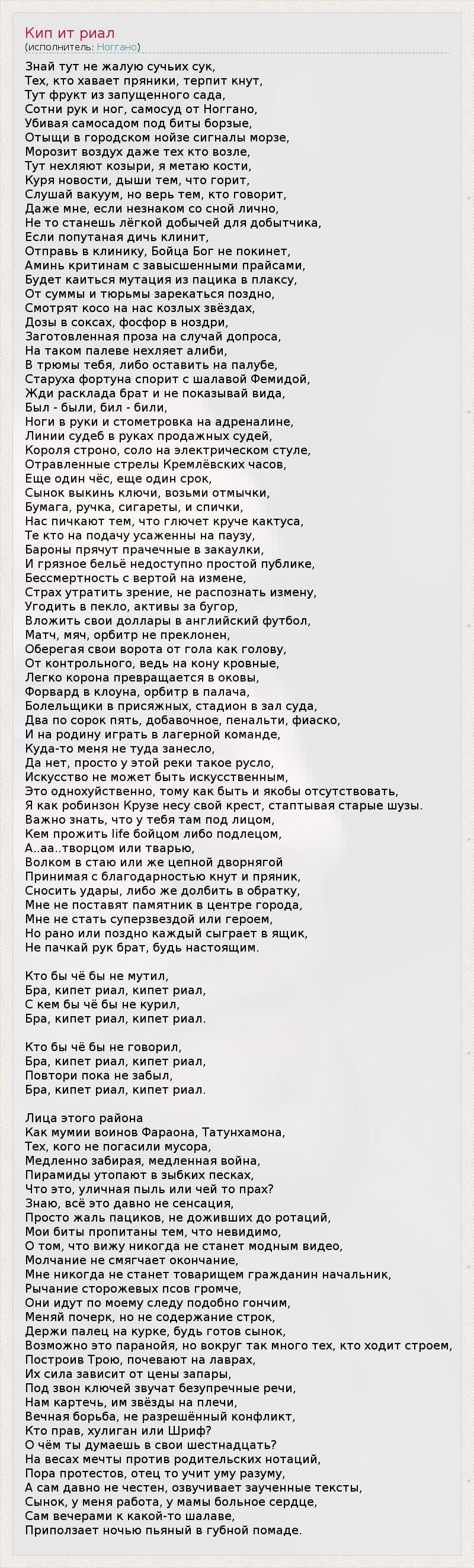 А как ты думаешь, о чем песня "Кип ит риал" ?